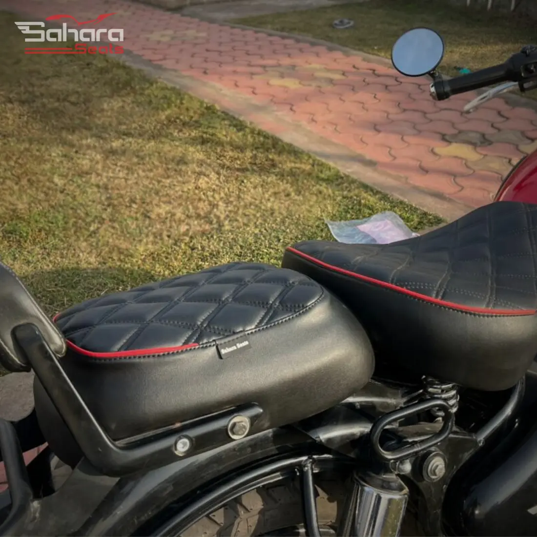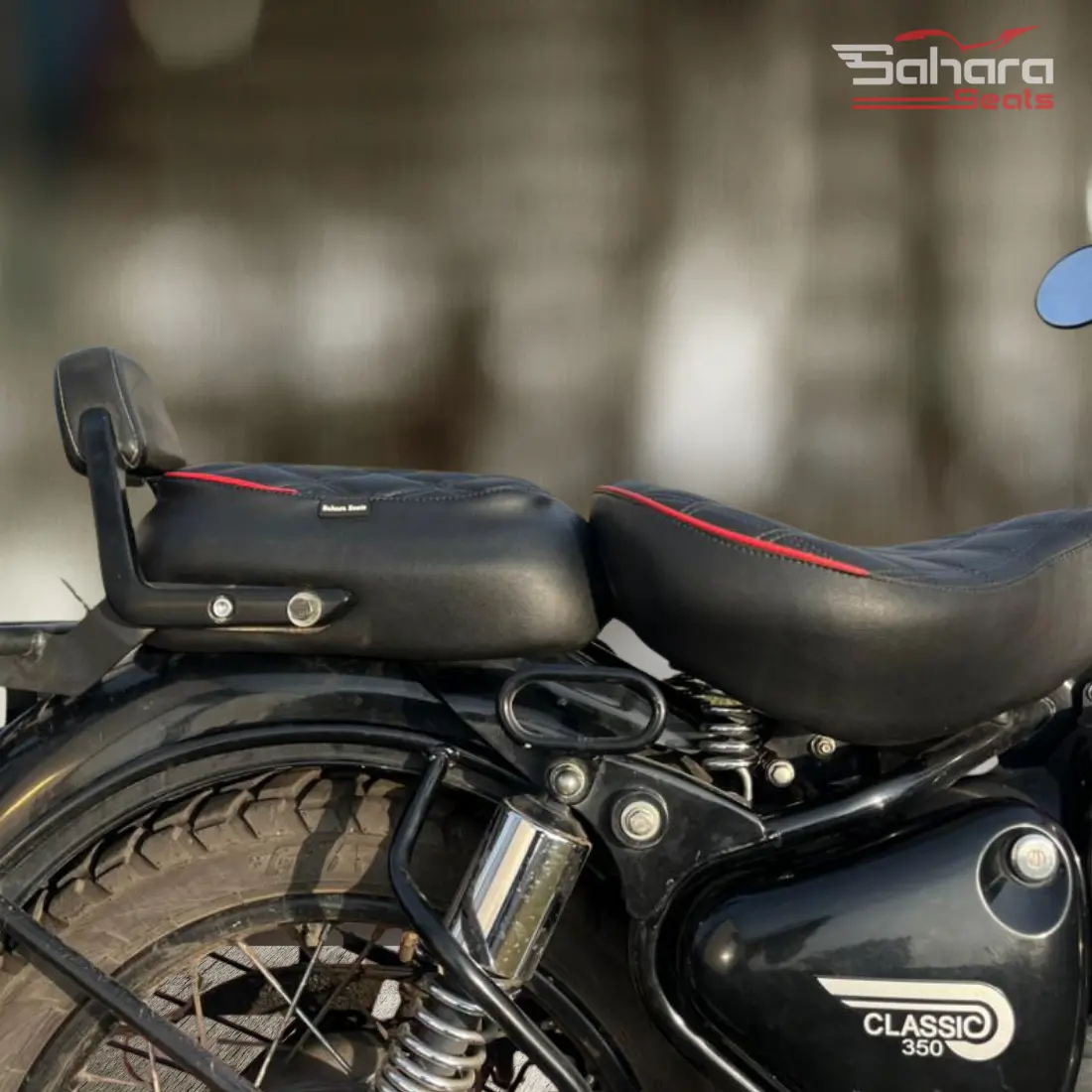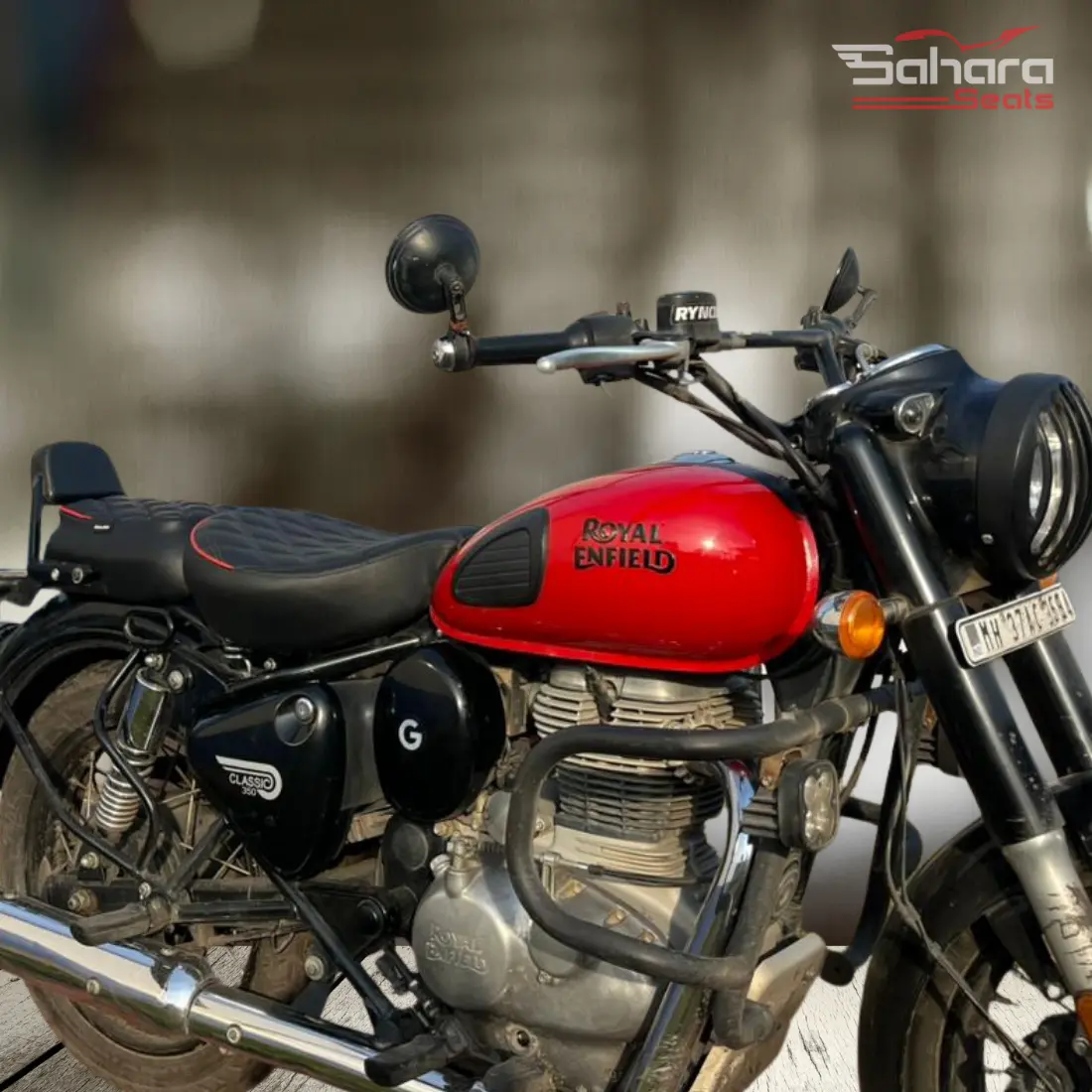 Introducing the SaharaSeats Signature Bucket Seat crafted exclusively for the Royal Enfield Classic Reborn 350—a fusion of bold styling, premium materials, and long-ride engineering.