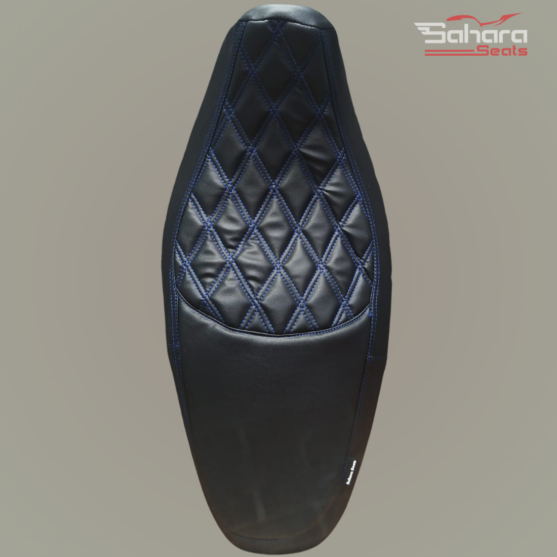 Featuring a precision diamond stitch pattern with striking blue highlights, the seat cover adds a sporty, premium appeal while improving grip and seating feel. Made from high-quality, durable leatherette, it is built to withstand daily use and varying weather conditions. The contoured design helps maintain riding comfort on city commutes as well as longer rides.