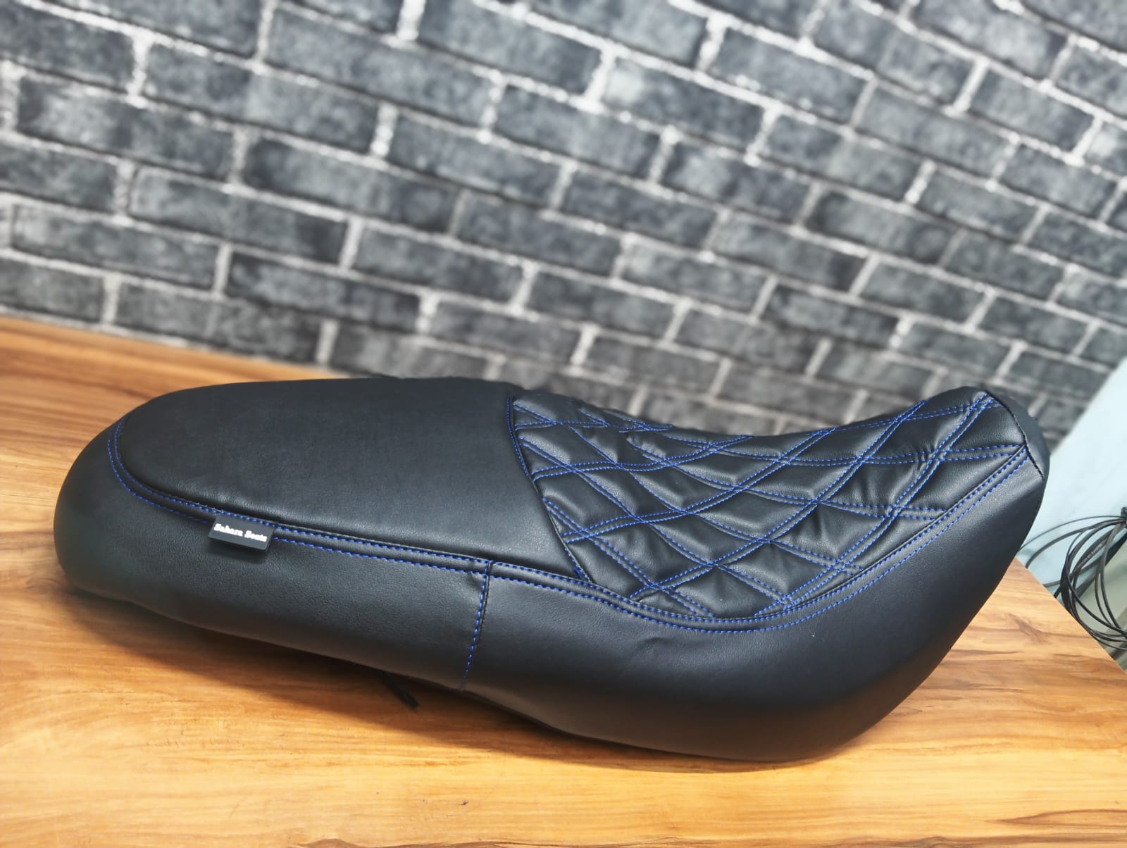 Royal Enfield Guerrilla 450 Premium Seat Cover – Diamond Stitch Design with Blue Highlights