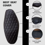 The seat cover is designed to enhance riding comfort with added cushioning and support, especially on long rides. Additionally, they offer improved grip, helping to prevent sliding or slipping.