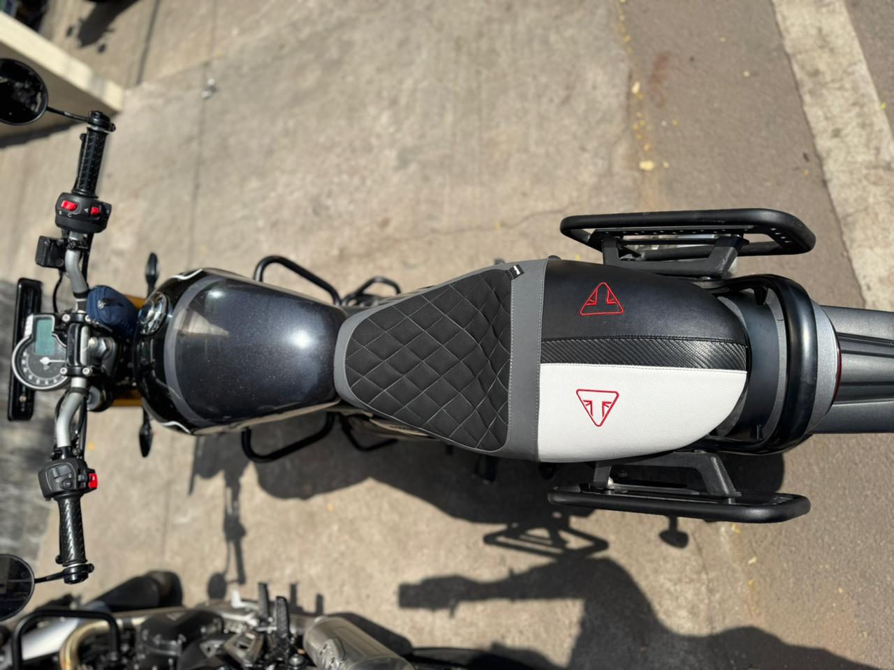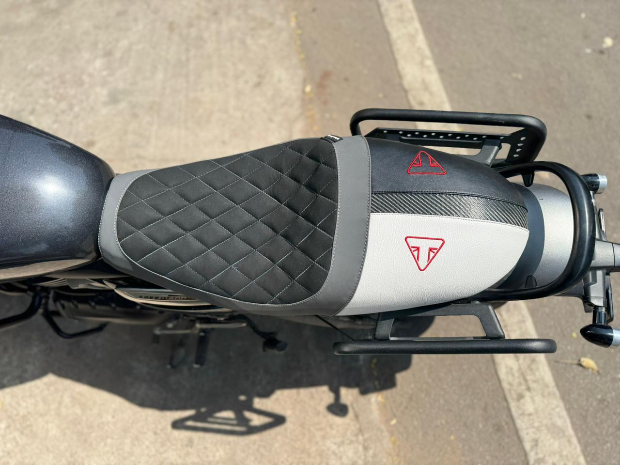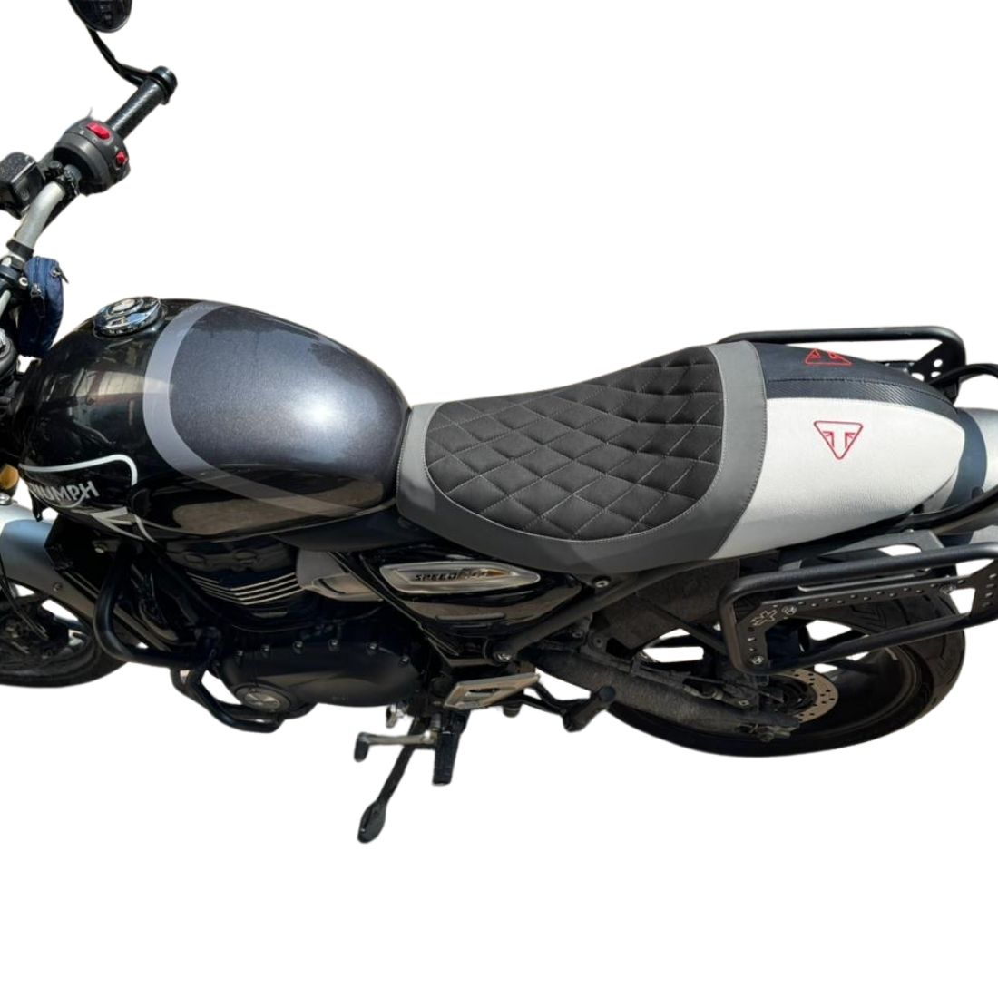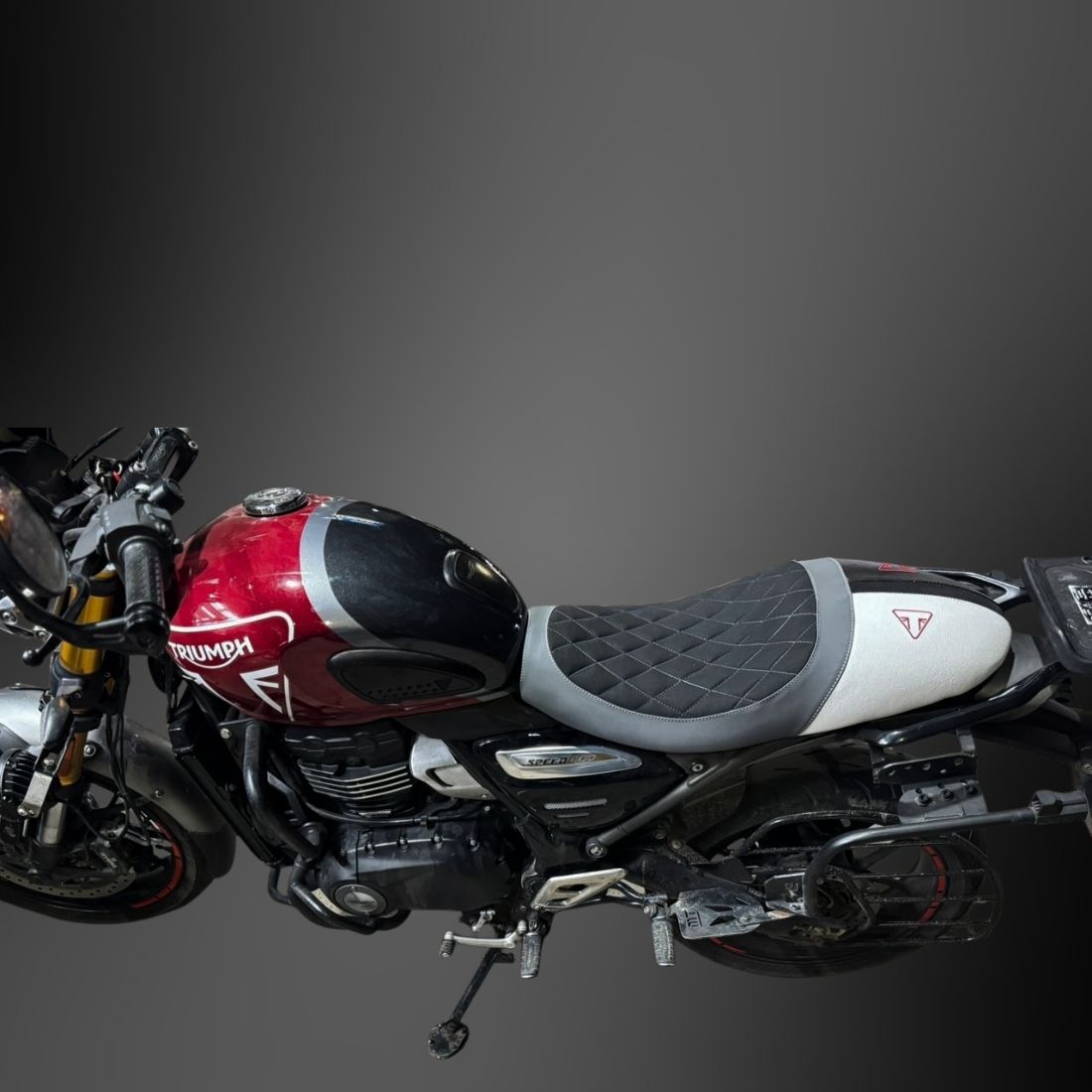 Elevate your Triumph Speed 400 / T4 (MY25) and Scrambler 400x with the Sahara Signature Suede Cafe Racer Seat, a perfect fusion of classic design and modern comfort. Handcrafted from premium-grade suede, this seat offers a rich, luxurious feel and excellent grip, giving your motorcycle a true café racer character.