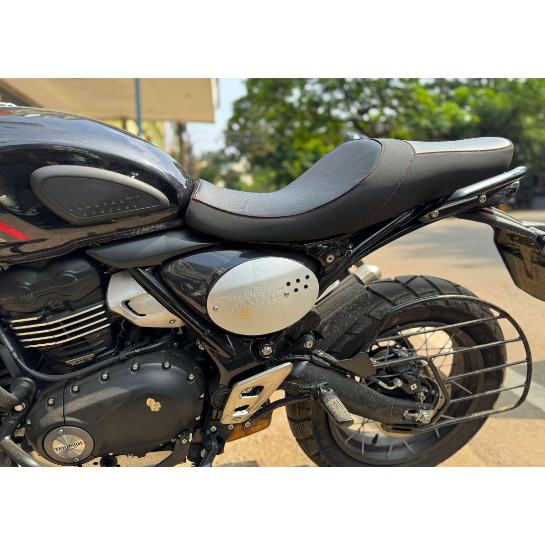 Experience theTriumph Scrambler 400x like never before.Upgrade your ride with this premiumย Rider Seat and enjoy a more comfortable, confident, and stylish riding experience.