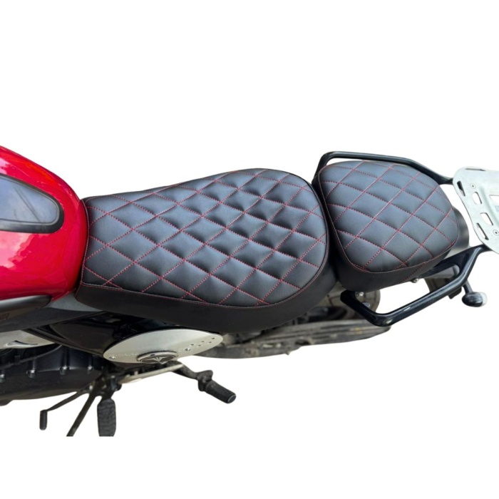 Elevate your Scrambler 400x riding experience with our premium Diamond Stitch Cushion Seat Cover. Experience the thrill of the ride with enhanced comfort, style, and grip.
