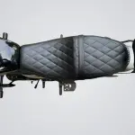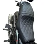While the seat offers some degree of moisture resistance, it is important to note that it is not waterproof. To help limit water penetration, a plastic barrier is included between the seat cover and the main cushion, however water may seep through the needle holes in the stitched design areas, especially where the diamond and stripe patterns are sewn. While it can handle occasional splashes or brief exposure to damp conditions, the surface is not fully waterproof and may absorb water during heavy rain or prolonged wet exposure. It is recommended to use a rain cover or store the motorcycle under shelter to maintain the seat’s condition and longevity. While rainfall or water washing will not damage the seat, it may take some time to dry.